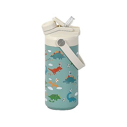 ストロー飲みと直飲みができる2WAY仕様の水筒です。持ち運びに便利なハンドル付きです。広めの口径なので洗いやすく、大きめの氷もスムーズに入ります。子どもに人気の恐竜・ユニコーンが可愛いデザインです。 |