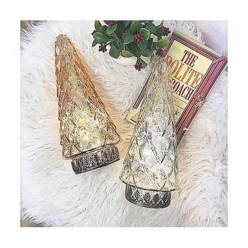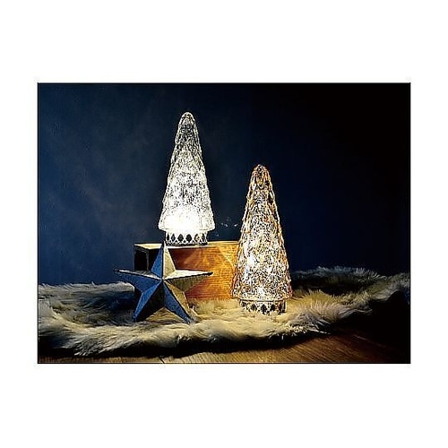 ラメがきらめく小さなツリー型のインテリアライトです。やさしい光がお部屋をほのかに照らし、冬のディスプレイやクリスマスコーディネートにも自然に馴染みます。 |