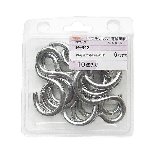 ステンレス Sフック 1セット(10個入) シルバー P−842