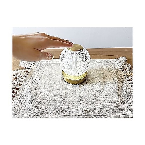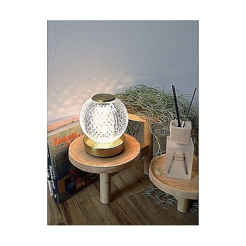 ガラスと真鍮風のベースを組み合わせた、レトロモダンな雰囲気のLEDランタンです。点灯すると、柔らかな光がカッティングガラスの柄に透けて広がります。USB充電式なので持ち運びや停電時にも便利です。 |