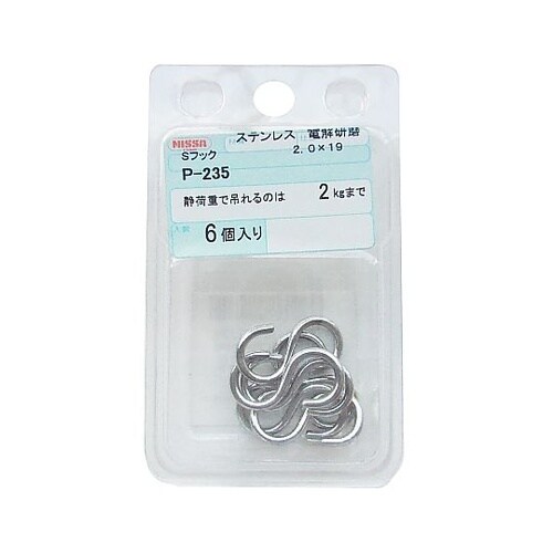 ステンレス Sフック 1セット(6個入) P−235