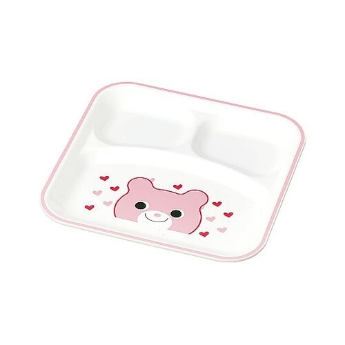 軽くて割れにくく、小さなお子さまも安心して使える樹脂製のスクエアランチプレートです。3つの仕切りがあるため、ごはんとメイン・副菜を分けて盛り付けられます。 |