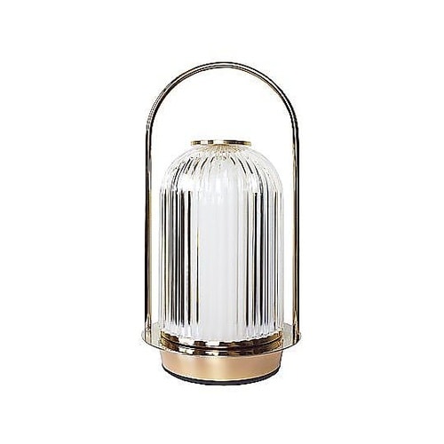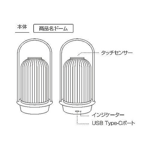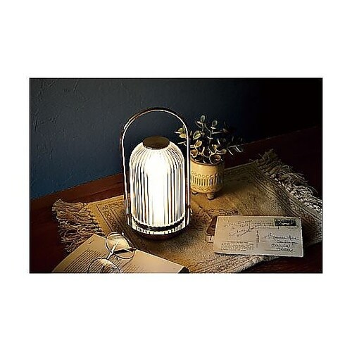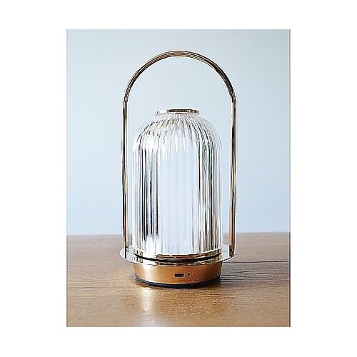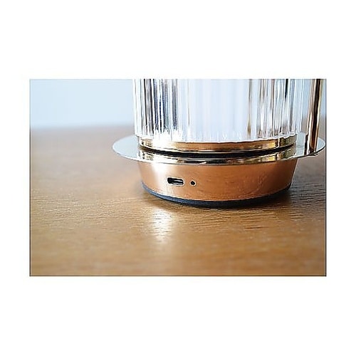 ガラスと真鍮風のベースを組み合わせた、レトロモダンな雰囲気のLEDランタンです。点灯すると、柔らかな光がドーム状のガラスに透けて広がります。USB充電式なので持ち運びや停電時にも便利です。 |