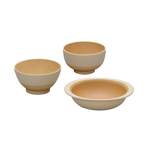 お子様用の汁椀と飯椀とボウルのセットです。軽くて丈夫、割れにくい樹脂製食器なので普段使いしやすいです。安心してお使いいただける抗菌加工が施された器です。 |