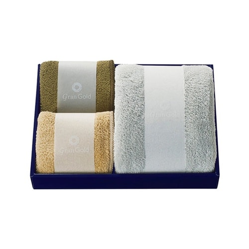 手触り良く吸水性あるふわふわ生地を使った、ハンカチサイズ2枚、デイリーサイズ1枚セットの豪華ゴールド箱入りタオルです。 |