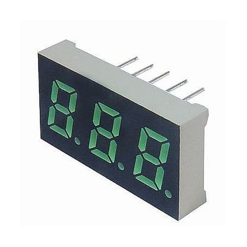 3桁の小数点付き7セグメントLEDです。カソードコモンのダイナミック点灯用です。 |