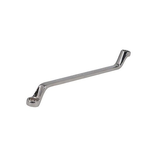 ミラー仕上げのメッキが美しい75°オフセットメガネレンチです。コンパクトなデザインで、狭い場所での作業に適しています。手前の障害物を越えて作業する場面で威力を発揮します。 |
