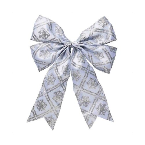 6個 リボンオーナメントセット大 シルバーチェック 58−40−5−11