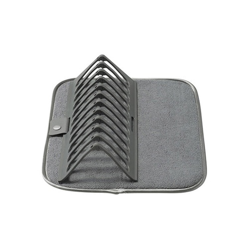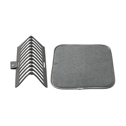 洗った食器の水きりに役立つ吸水マットです。食器を立てられるスタンド付きで使い勝手アップ。スタンドは外して折りたたみ収納可能です。 |