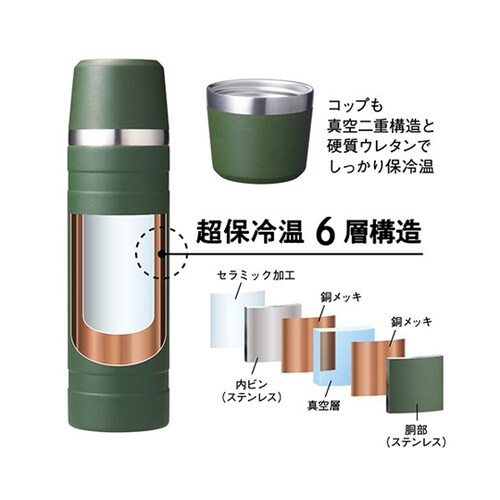 驚きの保温効力85℃・保冷効力6℃を達成。フタは真空構造のコップに、中はセラミック塗装、寒い冬でも山頂でも熱々の飲料を味わえます。 |