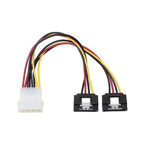 ラッチ付きでケーブルをしっかり固定できます。電源ユニットのペリフェラル電源コネクタ (大4ピン) をラッチ付シリアルATA電源コネクタ (15ピン) ×2に変換します。 |