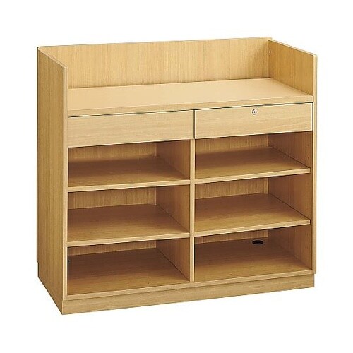 木製ですっきりとしたデザインと、サイズ幅や収納スペースの棚割が自由に組み合させられるバリエーションの豊富さが特徴のレジカウンター。受付やレジ業務をスムーズにし、お客様へ良い印象を与えられるレジ台です。 |