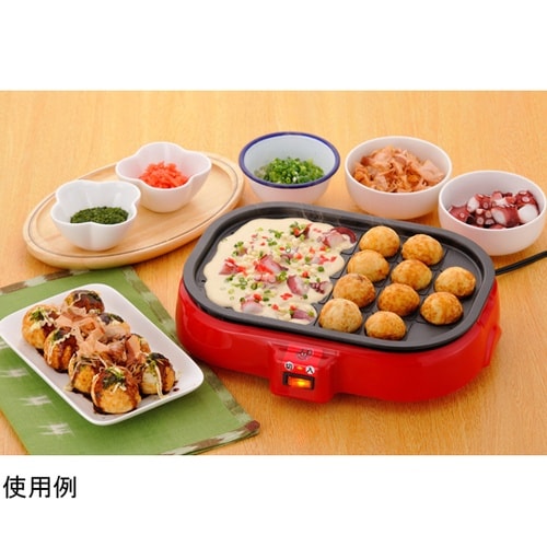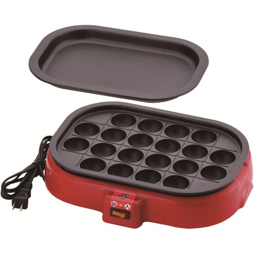 たこ焼きと平プレートの2枚セットです。ふっ素樹脂塗装でたこ焼きをクルクルかえせます。あつあつのたこ焼きが20個焼けます。ちょっとした調理に便利な平プレート付き。プレートは着脱式なので丸洗いOK。 |