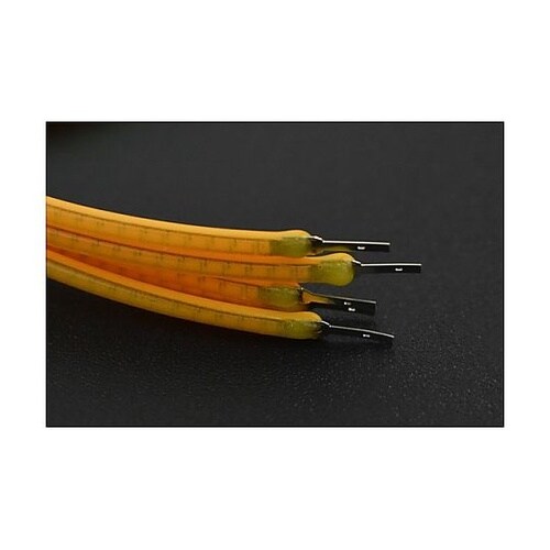 フレキシブルLEDフィラメントチップ直径2mm、長さ260mmのフレキシブルLEDフィラメントチップです。小さな丸い穴の端がプラス電極で、無孔の端がマイナス電極です。 |