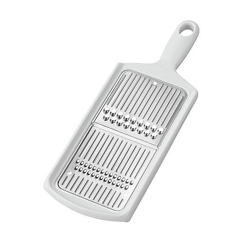 にんじんや大根、きゅうり等の千切りやツマ切りにご使用頂けます。両面を使い分けて野菜の千切り&ツマ切りができます。刃はサビにくいチタン製で衛生的です。食器洗い乾燥機に対応します。 |