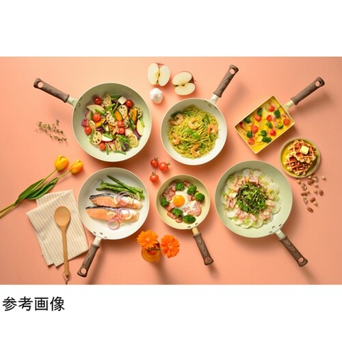 フライパンをお皿がわりに!従来のセラミックコートよりもくっつきにくい”セラノヴァ”コートを施したフライパン。テーブルの上でも邪魔になりにくいショートハンドルで、お皿のように扱えます。 |