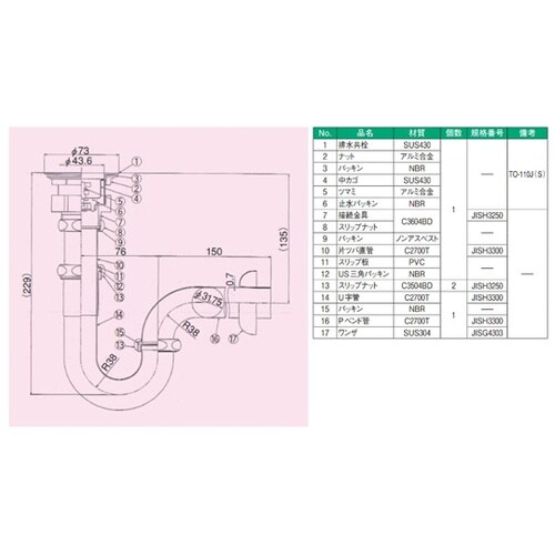 P型の排水管トラップです。中カゴ付の共栓(TO−110J(S))が付属します。※寸法・容量・重量・形様・強度・仕上り等は多少の変化がある場合があります。 |