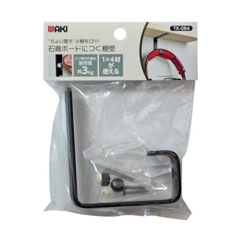 石膏ボードにつく棚受 棚1枚+フック用 黒 TK−84