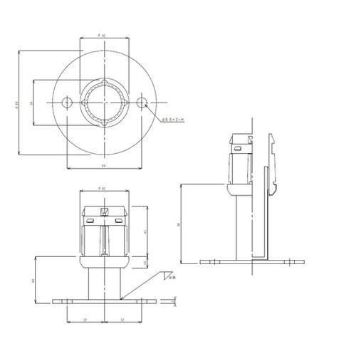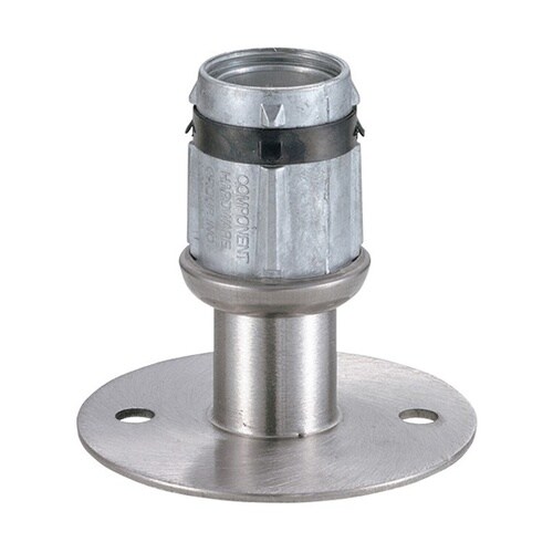 ゴムハンマーなどで丸パイプに打ち込んで取付けます。アジャスター(中子)を回すことで高さの調整ができます。設置面はアンカー固定用の穴明きフランジです。 |