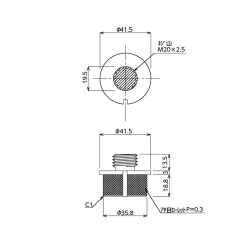 丸パイプ用のオネジ付き金具です。パイプに打ち込んで取付けます。※寸法・容量・重量・形様・強度・仕上り等は多少の変化がある場合があります。 |