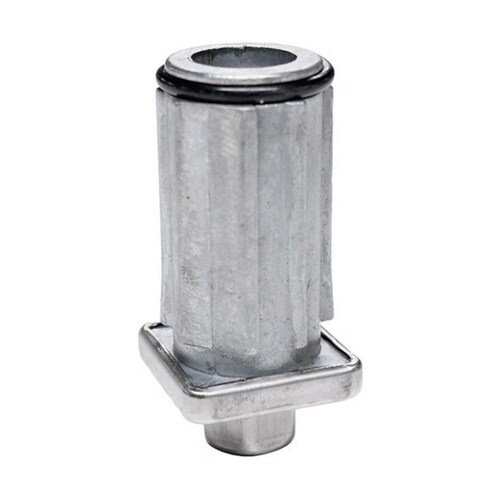 ゴムハンマーなどで角パイプに打ち込んで取付けます。アジャスター(中子)を回すことで高さの調整ができます。設置面は水平調整しやすい六角形状です。 |