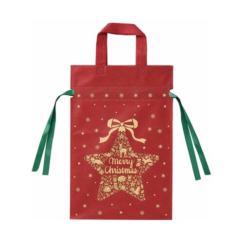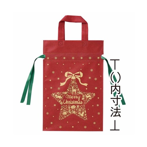 20枚 不織布リボン付きギフトバッグ シンプルメリークリスマス レッド 58−141−9−1