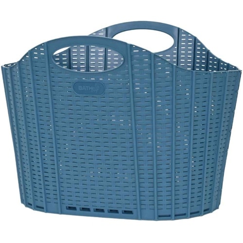 折りたためるランドリーバスケット ラタン ブルー 120413