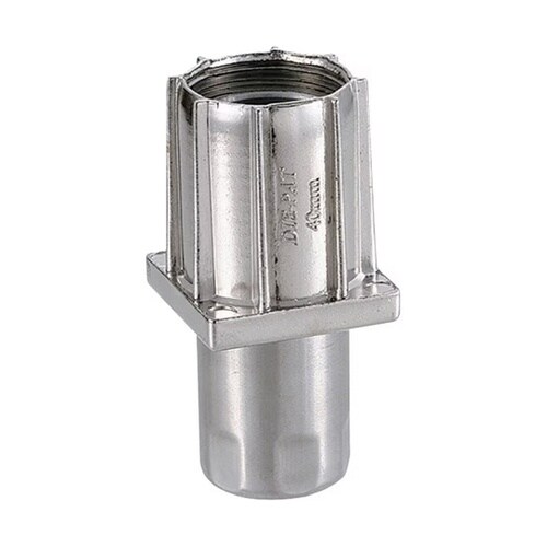 ゴムハンマーなどで角パイプに打ち込んで取付けます。アジャスター(中子)を回すことで高さの調整ができます。設置面は水平調整しやすい六角形状です。 |