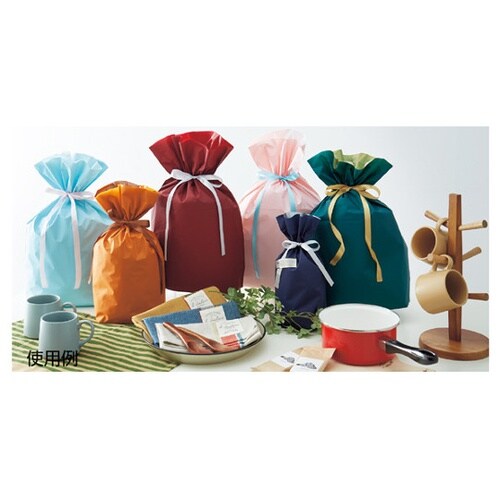 かわいらしいパステルカラーと、深みのあるダークカラーが新登場。リボンを絞ると内側の袋が見えてツートンカラーになり高級感がアップします。 |