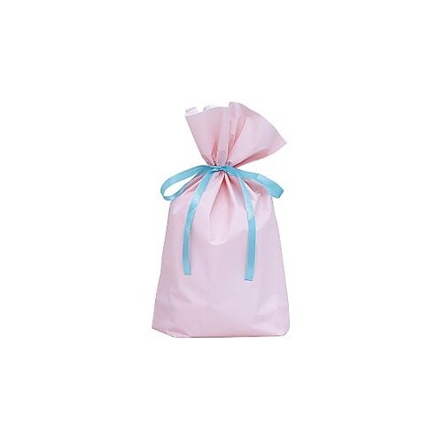 【20枚】梨地リボン付きギフトバッグ パステルピンク 17×28(18)×底マチ8cm 61−759−84−1