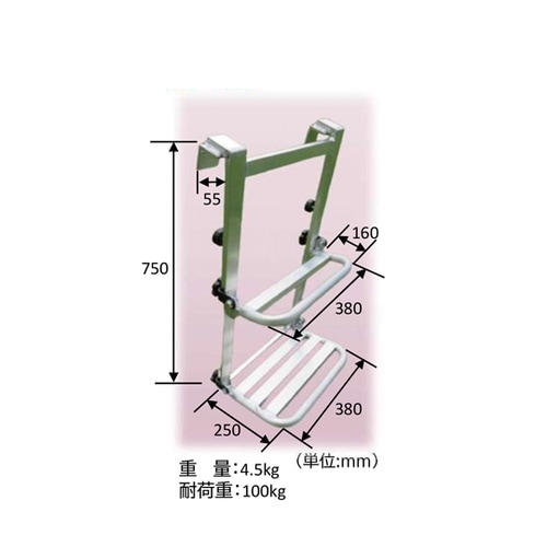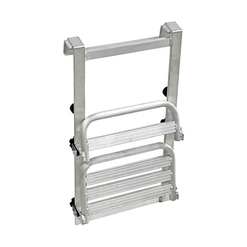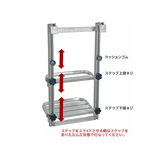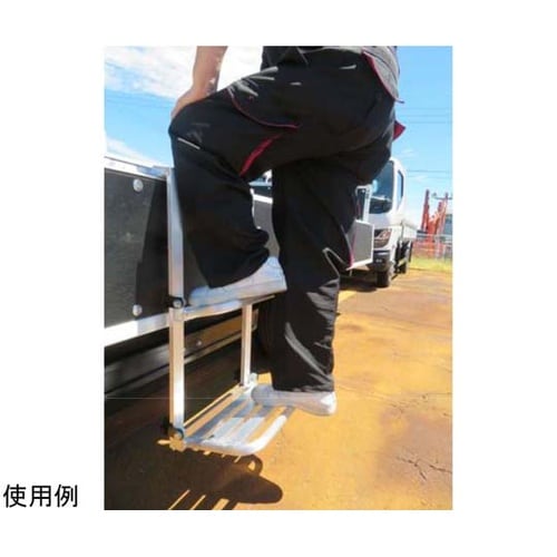 トラック(2t車以上)の昇降設備の設置義務化に。アオリ巾55mm以内の1t車ー4t車までに取り付け可能ステップは2段、ステップ幅はワイドな380mm。登り降りが安定し安心です。軽くて丈夫なアルミ製。 |