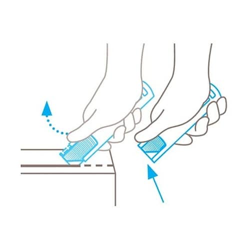 ケースやコンテナの開梱の効率化の為に作られたカッター左・右利き兼用スプリング式グリップはステンレス製で、高いカッティング頻度と長時間の使用に耐えるよう設計されています。 |