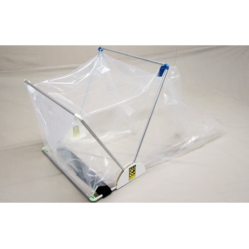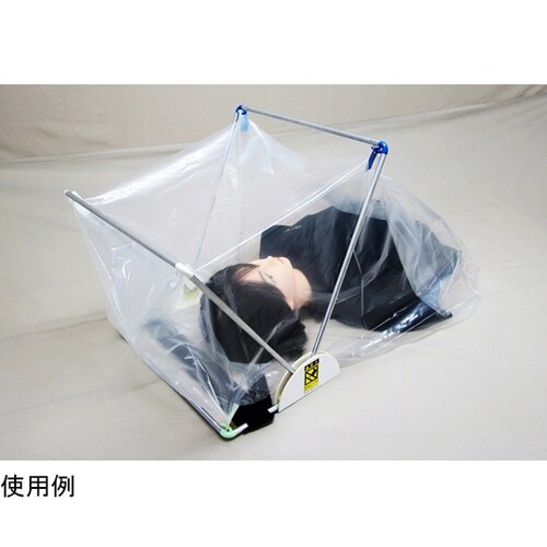 フレームを広げ、ディスポシートを吊り下げて頭部に設置の簡単3ステップ。フレームは可変式で折りたたみが可能なので保管時も収納スペースをとりません。 |