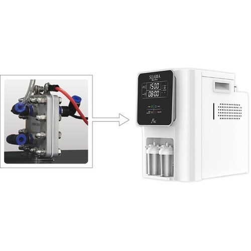 サロンやクリニクの内観を損なわない、清潔感のあるすっきりとしたボディ。圧迫感や威圧感を与えない優美な曲線デザインで、施術のストレスをオフ。水素を生成する電解槽には、最新の水素生成技術を採用。 |