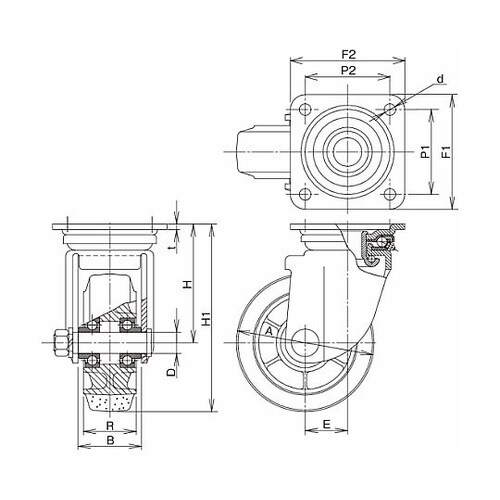 重荷重用キャスター 旋回キャスター JM 鋼板製ゴム 200mm RGJM−200