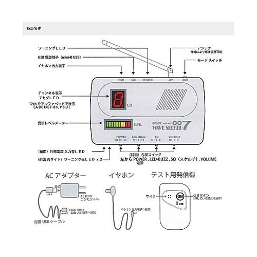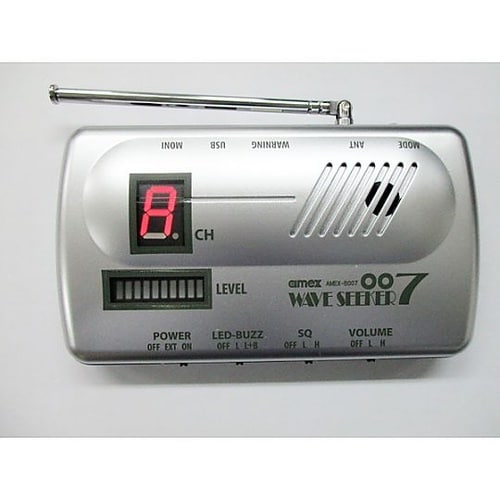 業界初、主要周波数12チャンネルを常時監視可能な盗聴発見器です。固定電話、時計、蛍光灯、コンセントタップ、エアコン上部などに仕掛けられた盗聴器で使用される主要周波数を常時監視。 |
