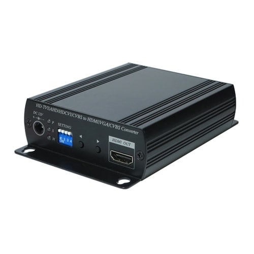 AHDカメラの映像を変換し、HDMI端子やVGA端子を備えたモニターに映すためのコンバーターです。 |
