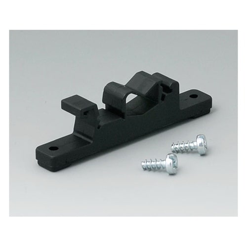 DINレール35mm(DIN EN60715 TH35 またはG32)への取り付けが可能になる汎用の留め具です。ケース下面等にφ3mmの穴を2つ設けて付属のねじで取り付けます。 |