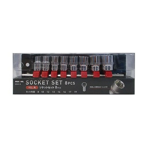 市販のラチェットハンドル等に取り付けて六角ボルトの着脱用に。ローレット付で早回しし易い形状のソケットです。 |