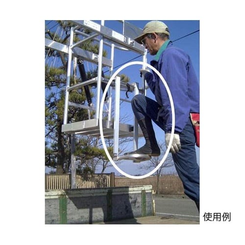 ゴンドラやトラックのあおりに掛けて使用すれば煩わしかった昇り降りがとても楽にできます。ステップの高さが無段階に調整でき、折りたたんで収納できます。横滑りを防止するクッションゴム付(高さ調節可能)です。 |