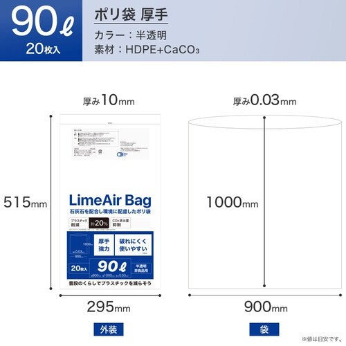 TBM LimeAir Bag ごみ袋 厚手 90L 1箱(20枚×15冊入) LAG−303 A0CH-3635
