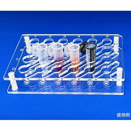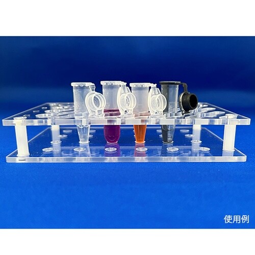 マイクロチューブの蓋が干渉しないマイクロチューブスタンドです。マイクロチューブの蓋を固定できます。蓋が干渉せず、コンタミも防止できます。SBS規格24ウエル対応です。分注機に対応しています。 |