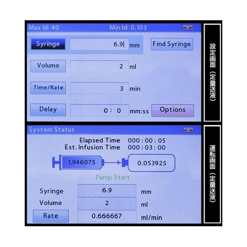 静電式タッチカラーパネル搭載の注入専用モデルで、同一のシリンジを2本まで設置できます。 |
