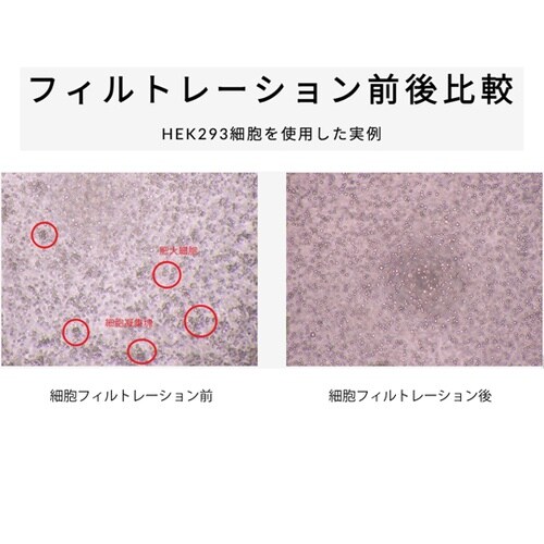 フローサイトメーターを使う研究者に。面倒な細胞のフィルトレーション(細胞凝集塊の細胞分離)を簡単に多検体処理ができる。96ウェルマイクロプレートに貼って使うセルストレーナーです。 |