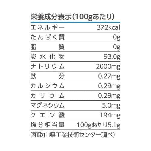 塩分だけでなく、梅の主成分クエン酸、カリウム等の各種ミネラルをおいしく補給できます。 |