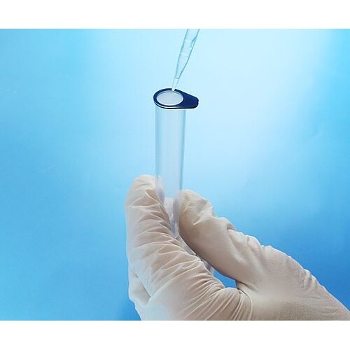 【チューブに貼って使うセルストレーナー】フローサイトメーターを使う研究者の方に。細胞のフィルトレーション(細胞凝集塊の細胞分離)が5mLチューブに貼って処理ができる。 |