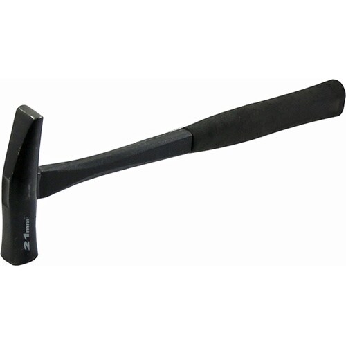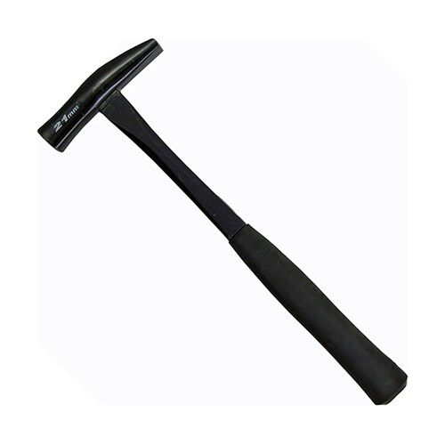 プロ仕様パワーヒッタータイプ。グラス柄 武力屋槌(錻力屋槌)。板金作業、電気工事などで狭い場所のたたき込みに最適。打撃面の焼き入れは、中央部を硬く、フチは欠け防止のためやや甘めに仕上げてあります。 |