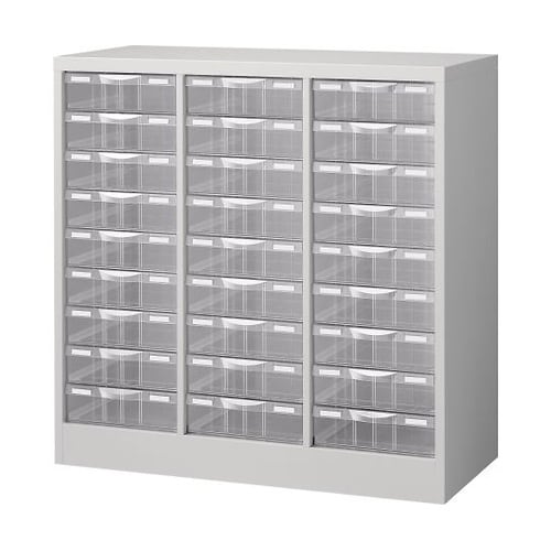 引出しは透明プラスチック製で、外から書類を確かめる事ができて便利です。 |