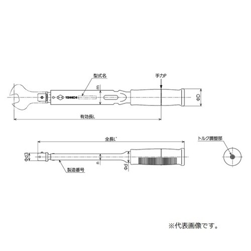 単能型手動式トルクレンチ(トルクフリー)BCSP型 調整範囲150ー300N・m 全長L’625mm BCSP300NX22D.