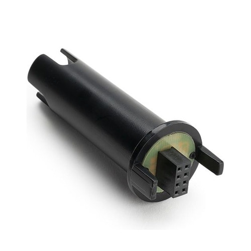 電極交換はテスター本体のフィッティング部にスライドさせ、ねじ込むだけで簡単にしっかりと取り付けることができます。電極交換後は再校正が必要です。 |